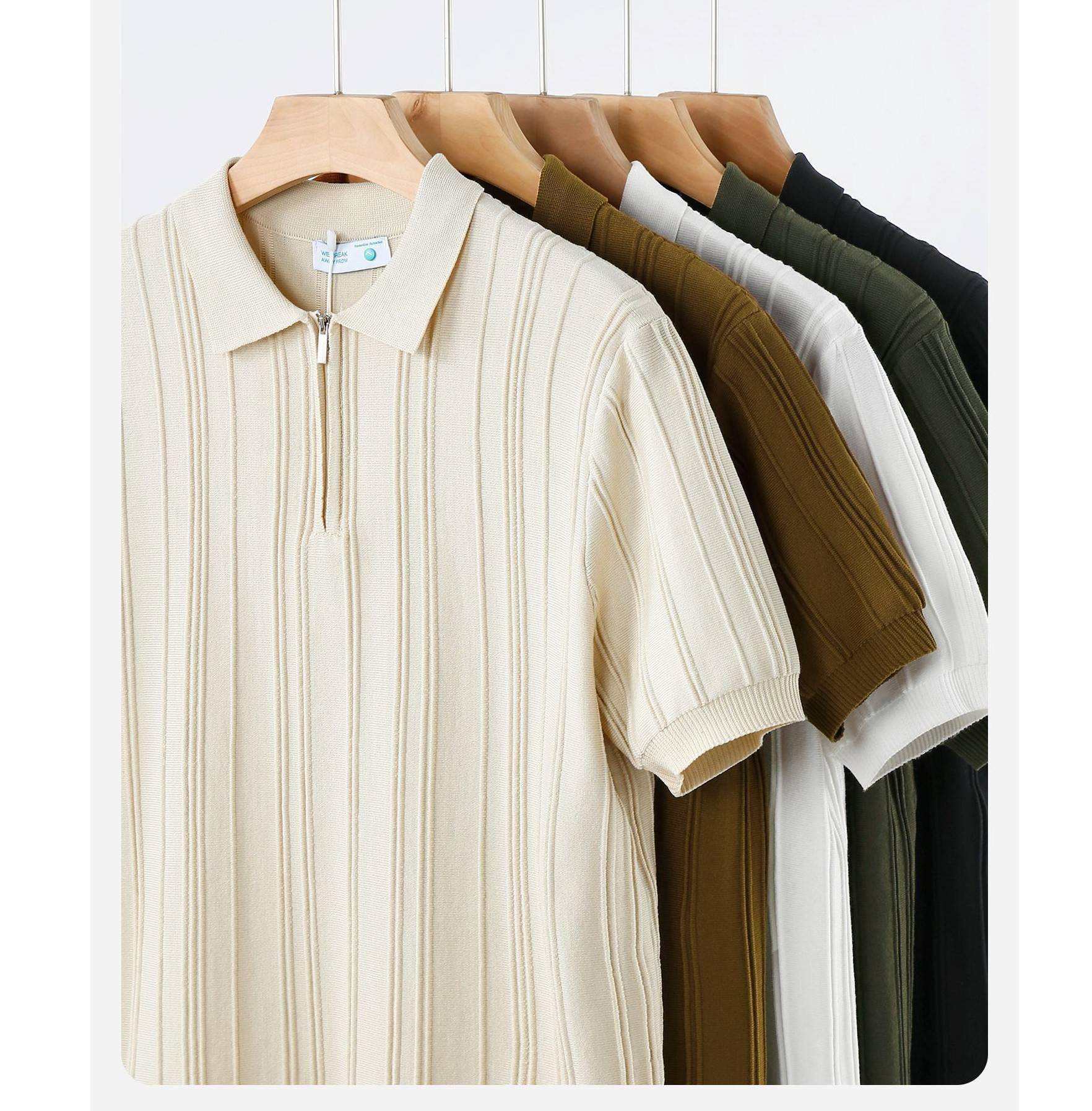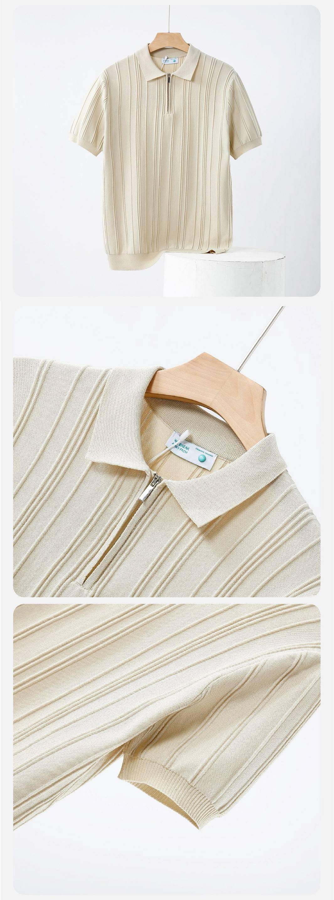 豎紋針織短袖上衣(2色)