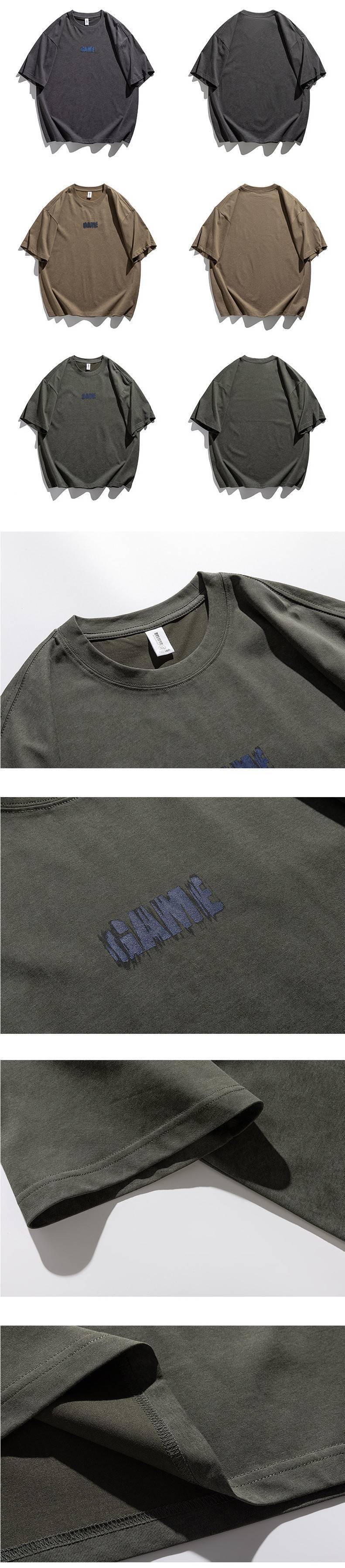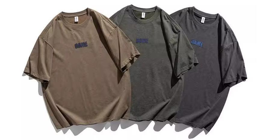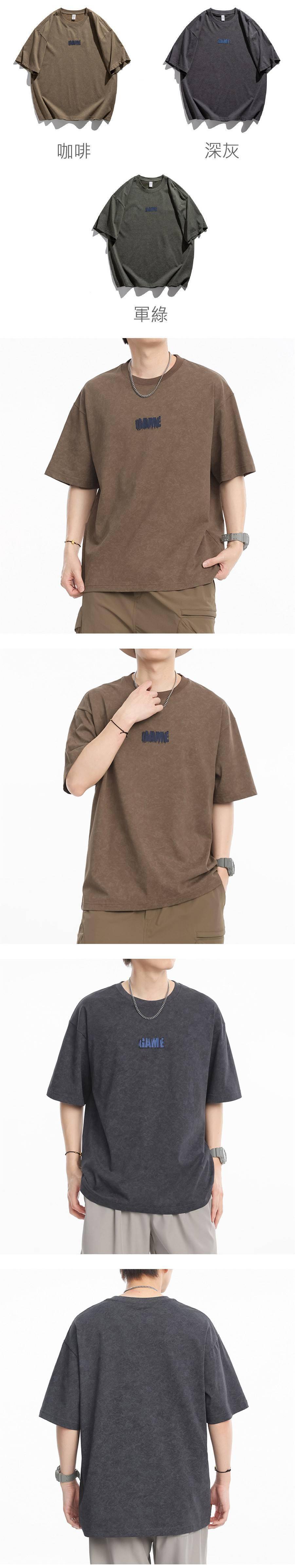 寬版水洗印花5分袖上衣